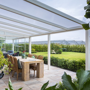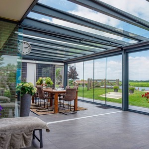 Fantastisk overdækning uden synlig hældning på taget. Fås i 3 varianter, alle med glastag.