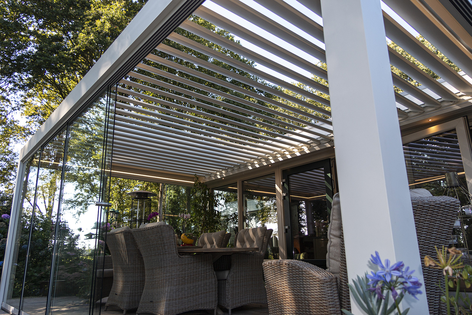 En ULTRALINE overdækning kan altid udvides med forskellige muligheder, også når den allerede er installeret. En glidevæg, markise, LED-belysning, varmelegeme og/eller fast væg er nogle eksempler på de mange muligheder, der kan vælges.