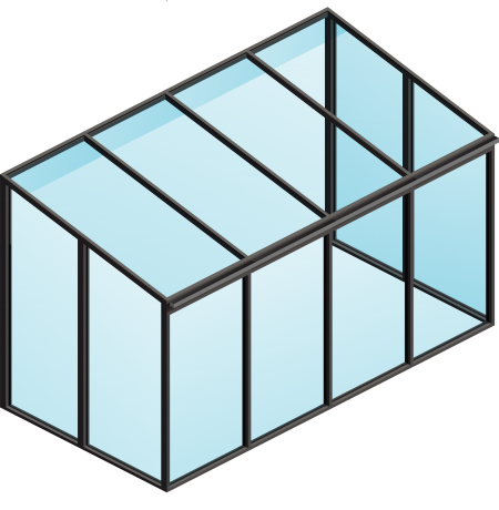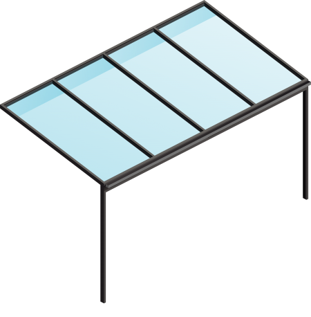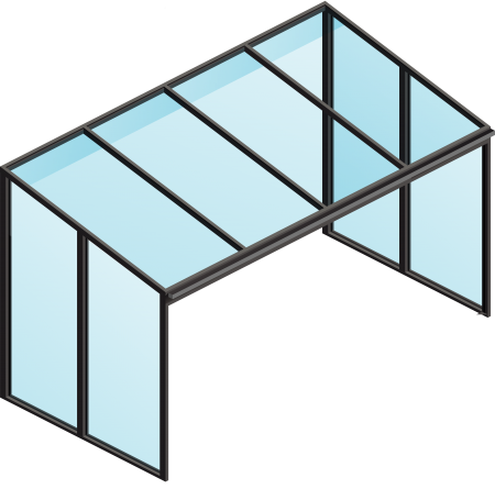 I eksemplet er Ultraline Classic overdækningen forsynet med 5-fags skydedørsparti i front og højre side. Venstre side er placeret op mod husets eget vinduesparti.