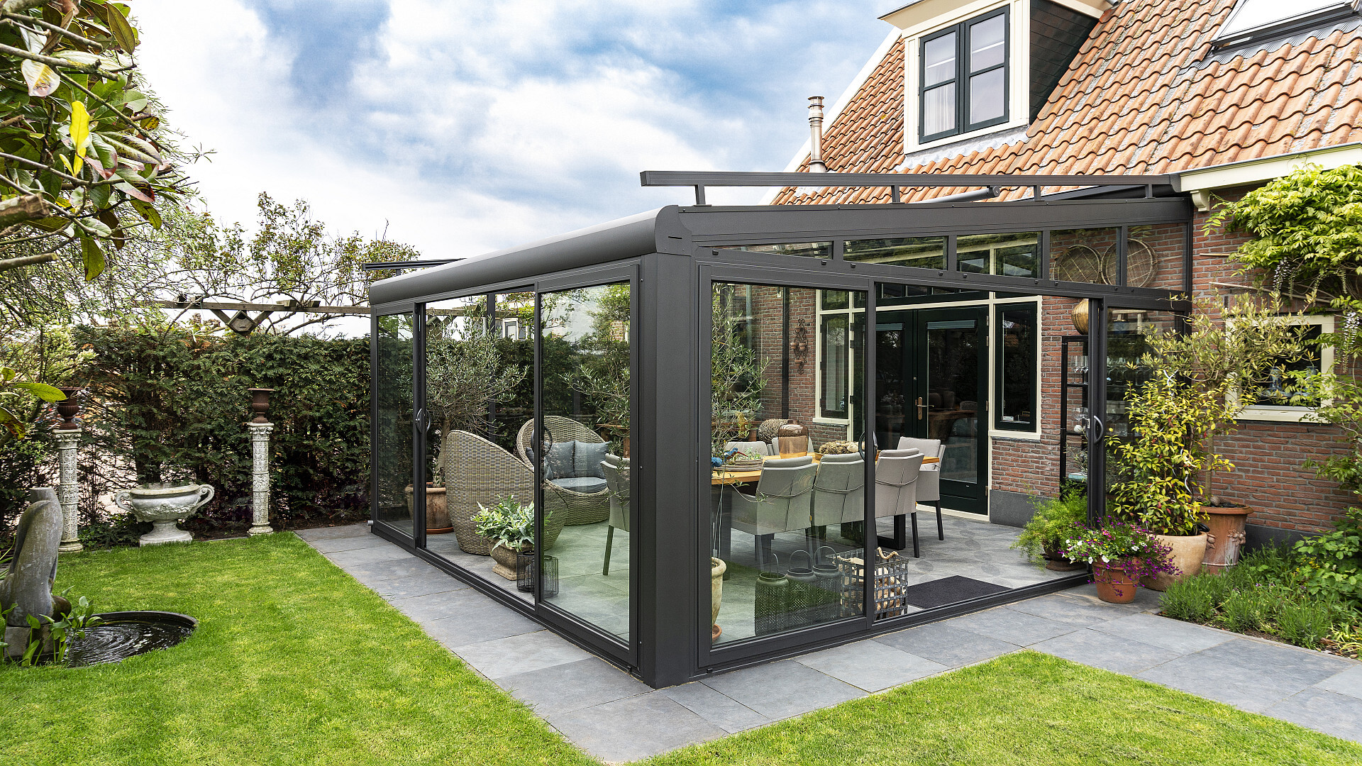Et ægte luksustag med sofistikeret teknologi og et unikt look. Det smukke design får dette tag til at fremstå, som om det var lavet af ét stykke. Den særligt stærke konstruktion trodser alle vejrforhold og kan valgfrit også fremstilles med delvis soltagsfunktion.