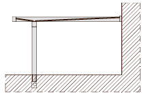 ULTRALINE leveres i faste størrelser – op til ikke mindre end 700 cm bredde og 500 cm dybde på kun 2 stolper. I bredder over 700 cm kobles flere tagrender.